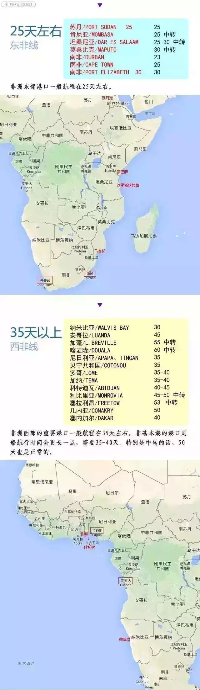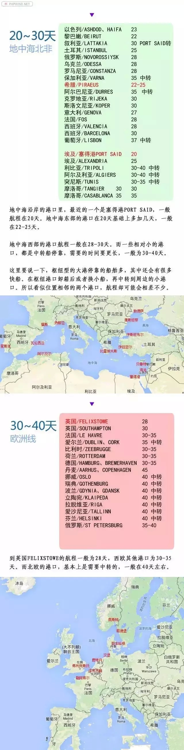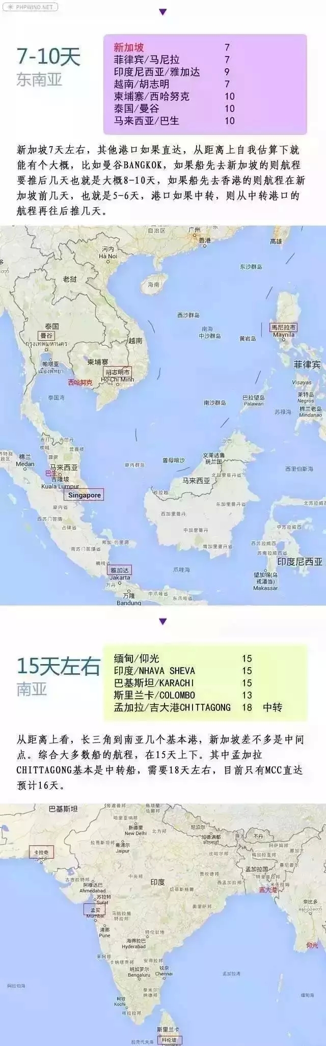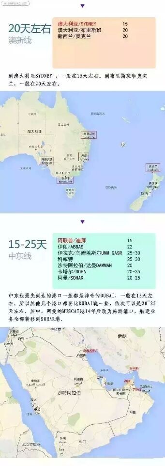 中国到全球100个主要港口的航程时间(海运周期估算表!)